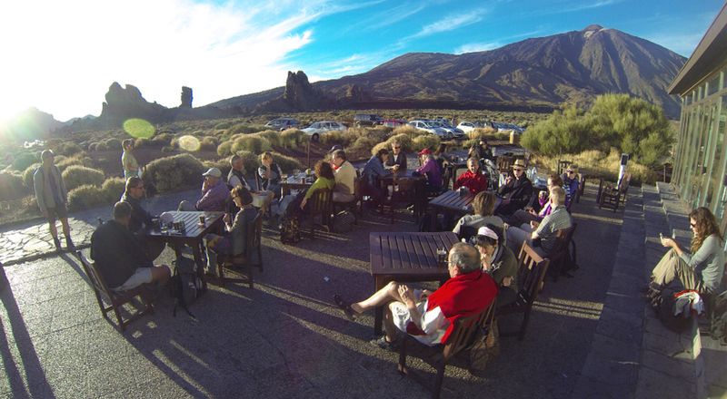 Se nos fue tanto la imaginación, que cuando volvimos en sí todo nos pareció peor de lo que recordábamos: los alimentos del autoservicio parecían tristes estornudos de invierno; en la puerta, un carro lleno de platos y vasos sucios recibía a los turistas a modo de preámbulo de la novela; los precios de ciertos productos amenazaban con engullir carteras sin piedad; y la calidez que debería envolver ese sitio había sido usurpada por la desidia del que no tiene que vérselas con la competencia. Y así, con un mal sabor de boca metiéndosenos en las encías, nos largamos de allí al cabo de una hora, pensando que el Teide y el turismo que genera se merecen algo mejor. Innovación, la menos. Un bar en continua recuperación, como mínimo.