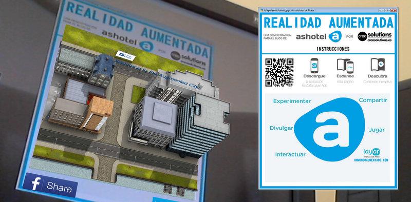 • Fidelización: podemos dar vida al folleto impreso del hotel o a cualquier material de ese tipo, como tarjetas, carteles o pósters, superponiendo a una foto del hotel un elemento en 3D o un vídeo que cobra vida al enfocar ese material impreso con la cámara del dispositivo móvil. El cliente se llevará ese folleto y lo reproducirá de vuelta a casa con amigos y conocidos como una experiencia más de vacaciones. El hotel podrá hacer seguimiento exhaustivo de cuándo y dónde se abrió cada una de esas experiencias, y por lo tanto obtener gran información sobre el éxito de cada campaña y su efectividad como herramienta de márketing.