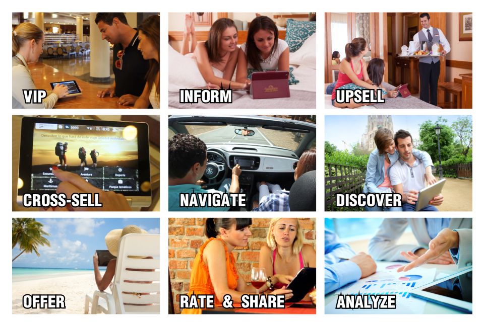 Con las tabletas siempre conectadas a internet, por ejemplo, el GPS de estas añade funcionalidades adicionales de geolocalización exterior, que junto a las balizas de proximidad crean un espectacular ecosistema de Servicios Basados en la Localización (LBS) que abarca todo el destino.