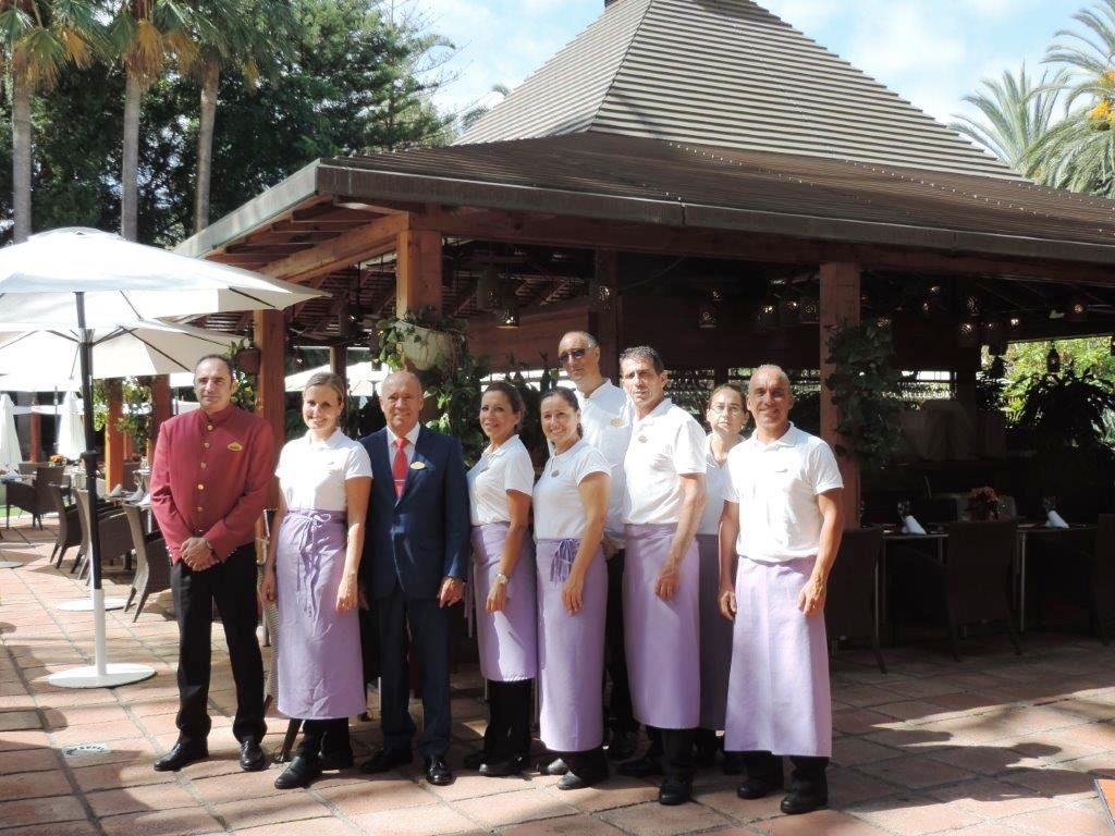 “Soy de Puerto de la Cruz, nací en la Casa Azul cuando allí había plataneras. Voy a cumplir 62 años este noviembre, me gusta decir siempre la edad que voy a cumplir, me siento muy orgulloso”. Así comienza Adolfo Hernández su presentación, un profesional que se ha hecho a sí mismo a base de trabajar. Comenzó en esta profesión como botones en otros hoteles de Puerto de la Cruz pero desde muy joven, con apenas 20 años, dio el salto al Hotel Botánico, unos meses después de su apertura, en octubre de 1974. “La vida me ha enseñado mucho, me he rodeado de buenos profesionales y me considero una persona muy observadora”, apunta. En febrero de 1975 empezó a trabajar en el Botánico como camarero, en el restaurante La Parrilla. Han pasado ya 41 años en los que ha ejercido como camarero, jefe de bares y, en los últimos 15, maître general. Adolfo se siente muy orgulloso de ayudar a los profesionales a prosperar, como el caso de una joven que ejerció como camarera un tiempo en el hotel “y hoy es abogada; eso me enorgullece un montón”.