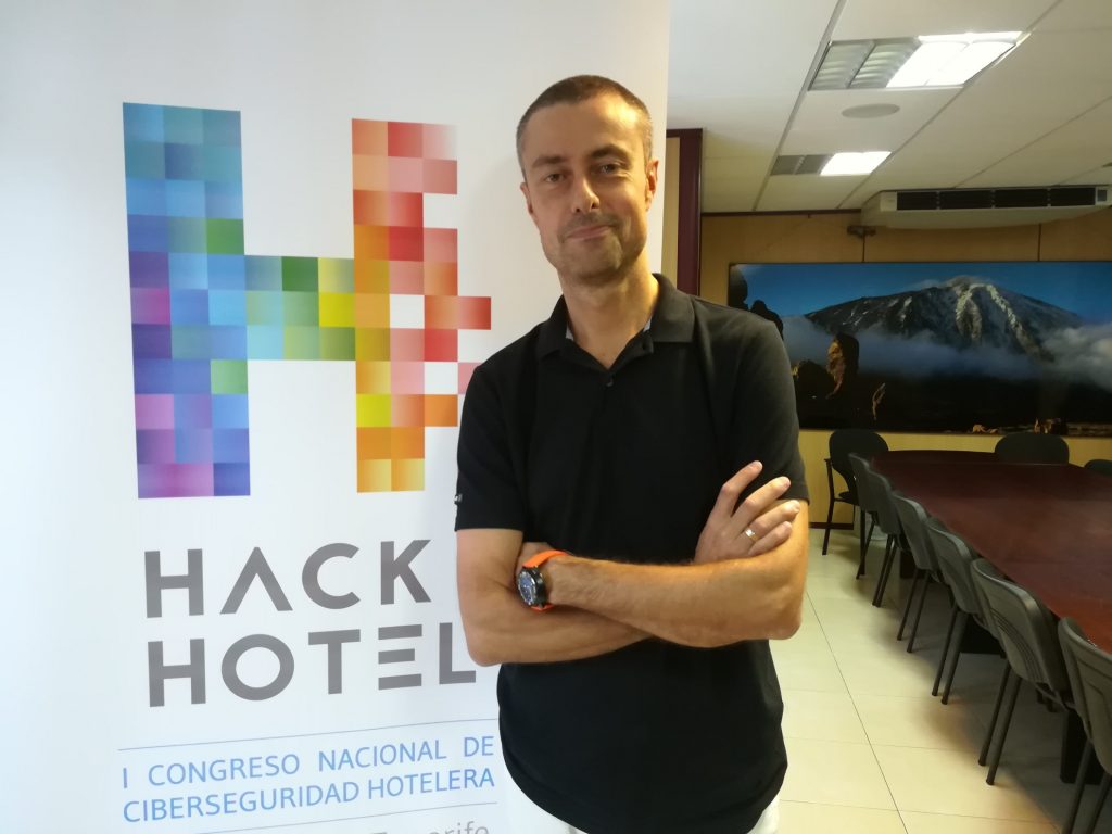 No trabaja exactamente dentro de un hotel, pero sí se dedica profesionalmente desde hace 12 años a prestar servicios desde la oficina técnica de la patronal hotelera tinerfeña a todos sus asociados. Metido de lleno en la organización de HackHotel 2017, el I Congreso Nacional de Ciberseguridad Hotelera, el responsable de Tecnologías de la Información y la Comunicación de Ashotel y alma máter de este evento profesional que tendrá lugar los días 10 y 11 de octubre en el Auditorio de Tenerife Adán Martín, reflexiona en esta entrevista sobre la necesidad de estar a la última en ciberseguridad en el sector hotelero y, por extensión, turístico. Minutos antes de esta conversación admite sentir algo de vértigo por el evento que Ashotel tiene entre manos y contento por lo que se podrá vivir en algo más de tres semanas. Entusiasta, curioso y siempre con ganas de aprender.