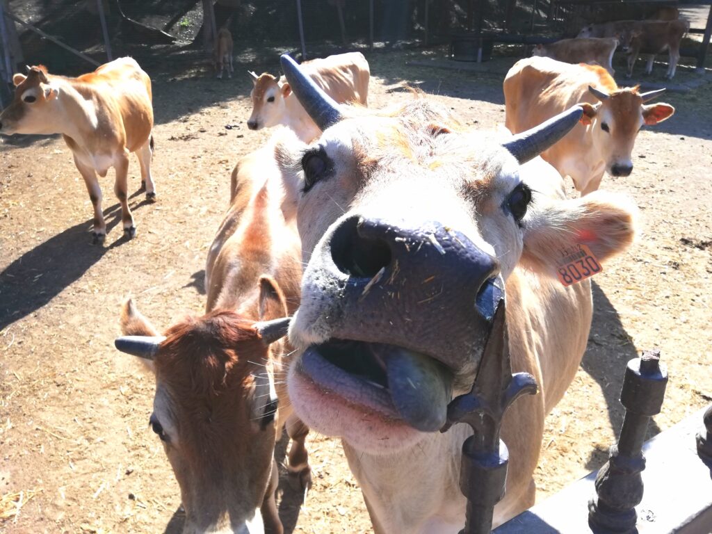 Además, la finca cuenta con unos 1.000 animales de razas autóctonas en su mayoría, entre ellas el cochino negro canario, la gallina campera negra, la cabra majorera, la oveja canaria y la vaca Jersey, que viven en contacto directo con el campo y en un ambiente limpio, con música durante el día, creando un entorno armonioso y relajado entre los animales. Toda esta riqueza animal se utiliza para la elaboración de yogures y una amplia gama de quesos de gran calidad, que van desde pastas prensadas de una sola clase de leche, hasta quesos de diferentes mezclas y coagulaciones de tipo vegetal o láctica. La producción anual ronda los 24.000 kilos. El esfuerzo, la dedicación y el mimo con el que obtiene y transforma esta leche ha conseguido que se logren quesos con una personalidad y calidad únicos, avalados por premios de relevancia a nivel nacional e internacional como los World Cheese Award. Sin duda, vale la pena probarlos porque son excelentes.