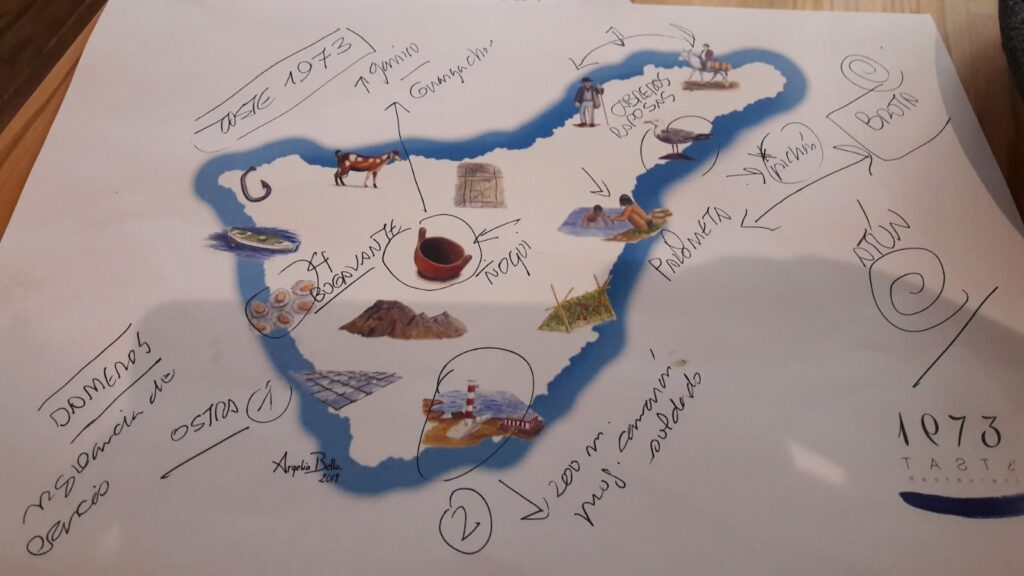 El comensal que acude al Taste 1973 va a contar con la guía de un mapa en el que la nomenclatura indica de qué y cómo parten esas elaboraciones que, por cierto, están basados en ‘ires y venires’ del cocinero y también de enriquecer con investigadores de la Universidad de La Laguna.