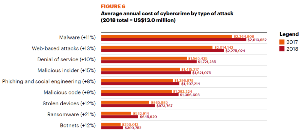 En el reciente estudio de Accenture sobre los costes de cibercrimen para las empresas se incluyen los ataques de phishing como una grave amenaza de ciberseguridad.