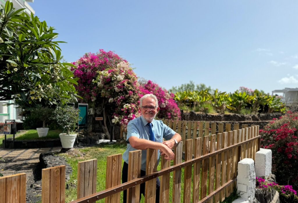 José Miguel (La Orotava, 1960) es, a unos meses de su jubilación, la historia de Parque Vacacional Edén, un complejo hotelero de 4 estrellas que abrió sus puertas en 1973, primero como dos instalaciones diferentes ─Esplanade y Edén Luz─ y desde 1988 como establecimiento único, con la entrada de los actuales propietarios. Este hotel cuenta con 224 unidades y 520 camas y cerró 2023 con una media de ocupación del 92%, un dato muy satisfactorio, que lo sitúa, además, entre la sexta y octava posición en TripAdvisor entre los 86 hoteles de Puerto de la Cruz. Se erige sobre una parcela de 35.000 metros cuadrados, de los cuales 14.000 son jardines, “la joya de la corona”. José Miguel llegó un día a trabajar con apenas 14 años de la mano de su madre, que ya realizaba labores de limpieza. “Éramos 12 hermanos y había que contribuir a la economía familiar, así que cambié el colegio por el hotel de un día para otro”, recuerda. Así que la suya es también la historia del aprendizaje en el puesto de trabajo. Comenzó de botones y cuando acababa su jornada, él y otros compañeros iban al comedor, donde un profesor les daba clases de inglés y alemán. En marzo se jubila tras 51 años de servicio, que se dice pronto. Transmite optimismo por los cuatro costados y cree que sabrá ser un buen jubilado. “Tengo tres nietos pequeñitos y entre eso y el pádel, seguro que no me aburriré”. Este profesional vocacional siente una gratitud inmensa por la empresa que durante cinco décadas ha creído en él y le ha permitido criar a sus cuatro hijas, que hoy ya forman parte del mundo laboral.